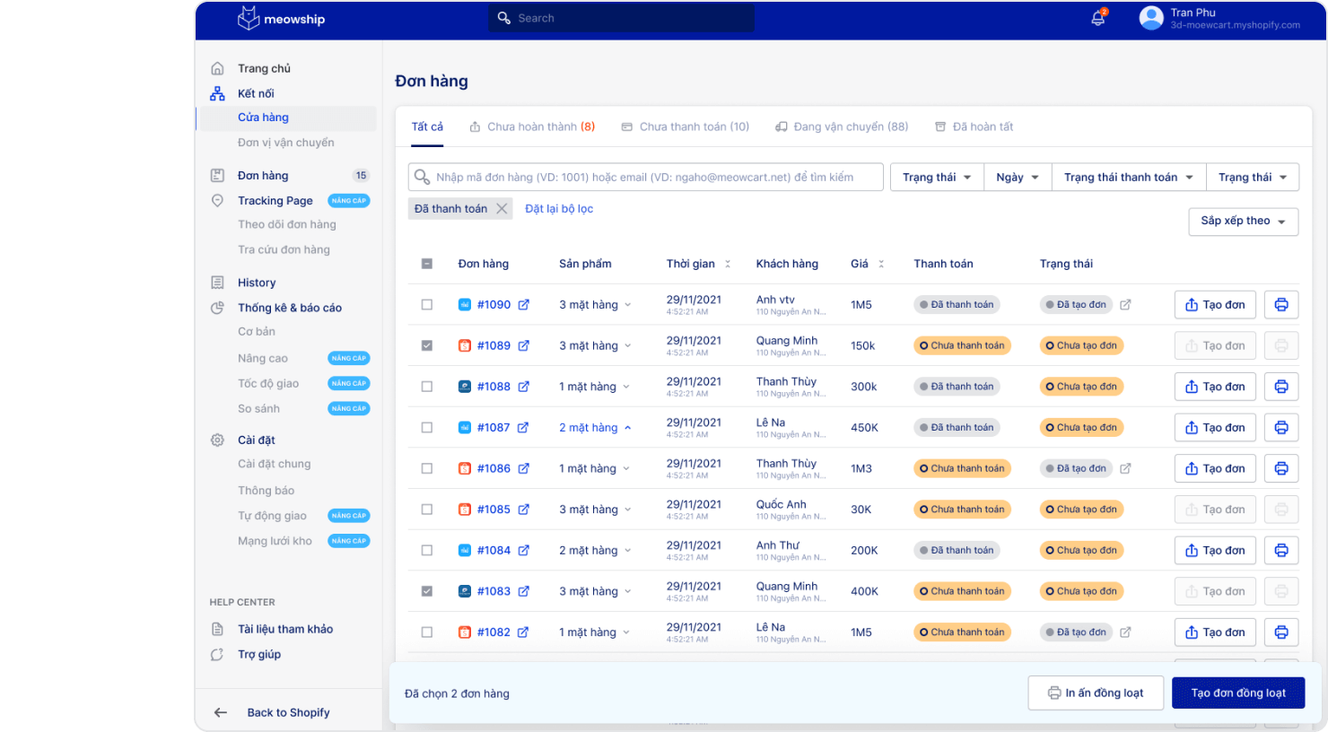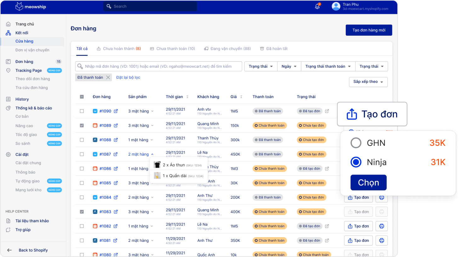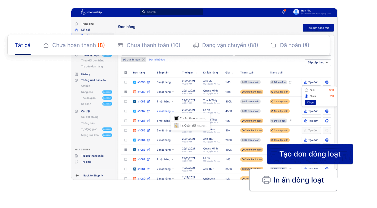 Đẩy đơn hàng qua hơn 10 đơn vị vận chuyển chỉ với 1 cú click chuột.