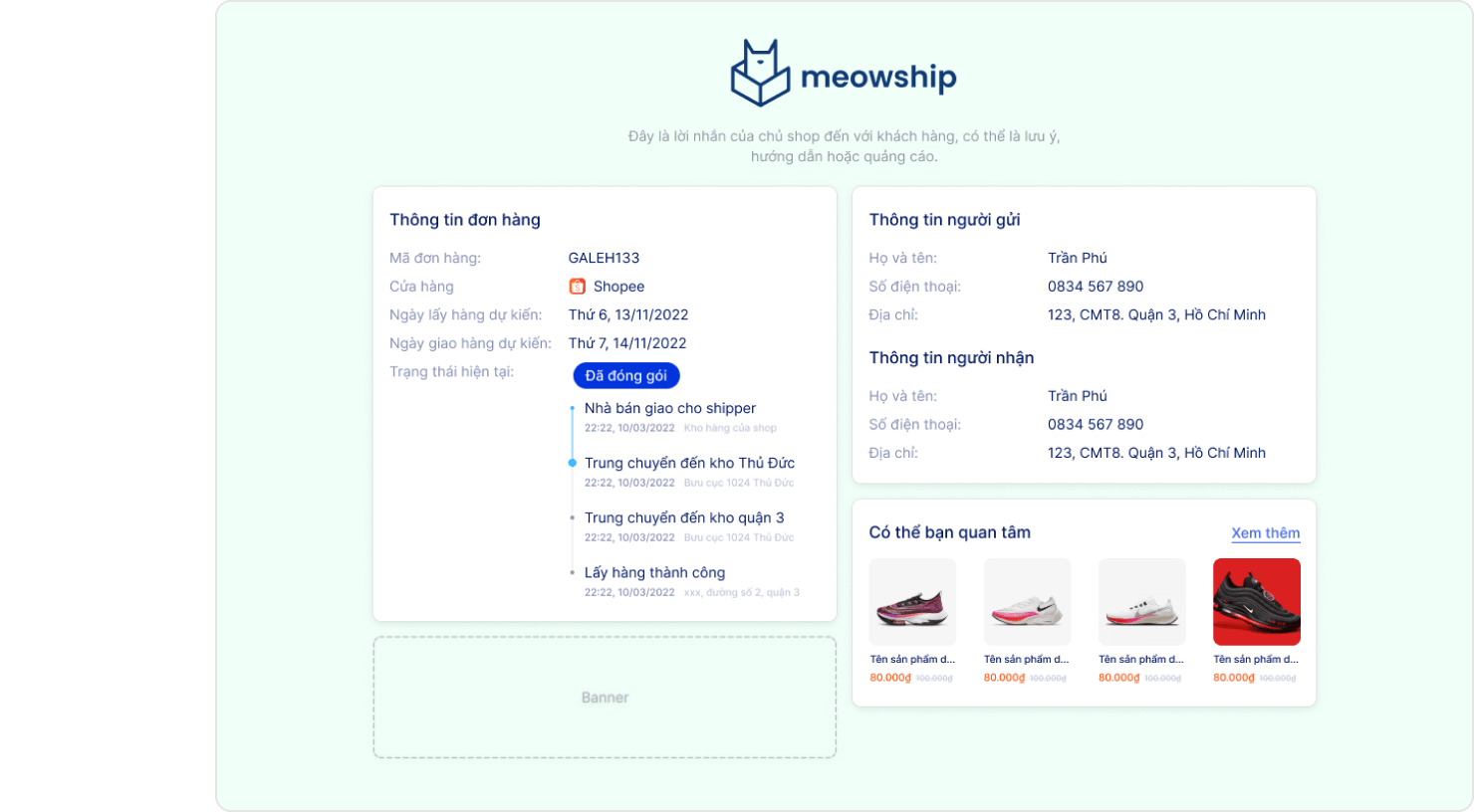Tự động hoá quá trình chăm sóc khách hàng bằng trang theo dõi và tra cứu hành trình vận chuyển của đơn hàng.
