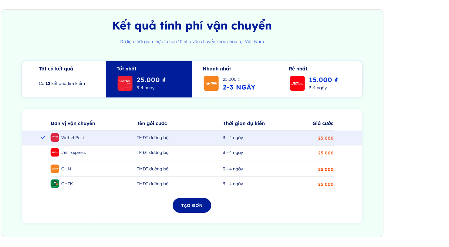 So sánh phí vận chuyển theo thời gian thực từ hơn 10+ đơn vị vận chuyển khác nhau.